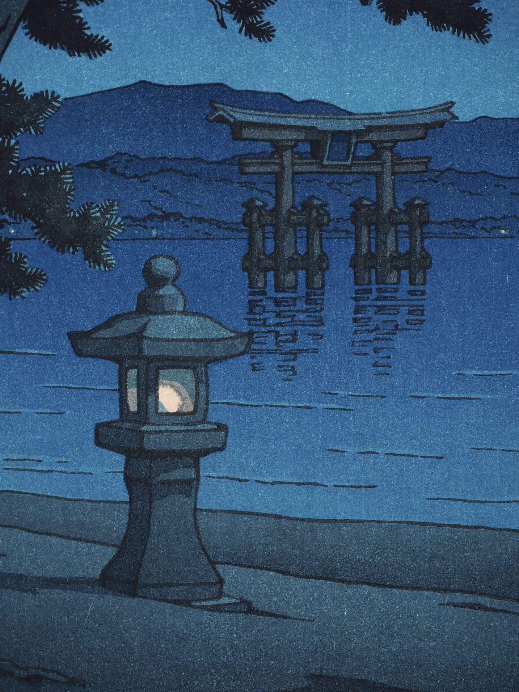 1. Дата (здесь Taish ō shichi aki [1918, осень]), подпись Хасуи с печатью Хасуи.