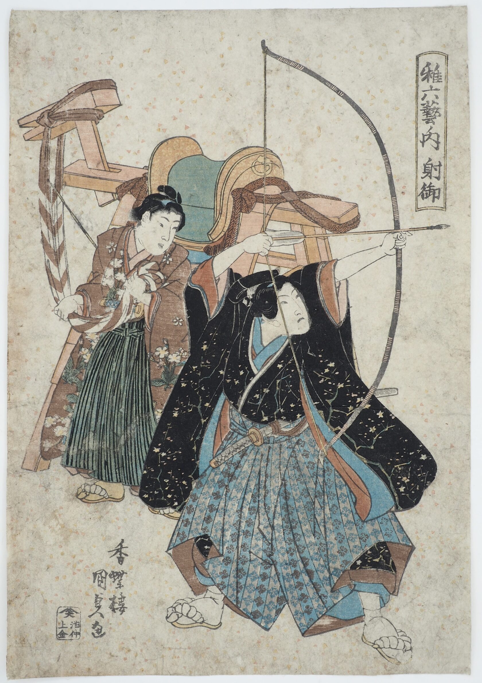Стрельба из лука и верховая езда. Из серии «Шесть искусств, демонстрируемых детьми» (Осана рикугэй но учи).