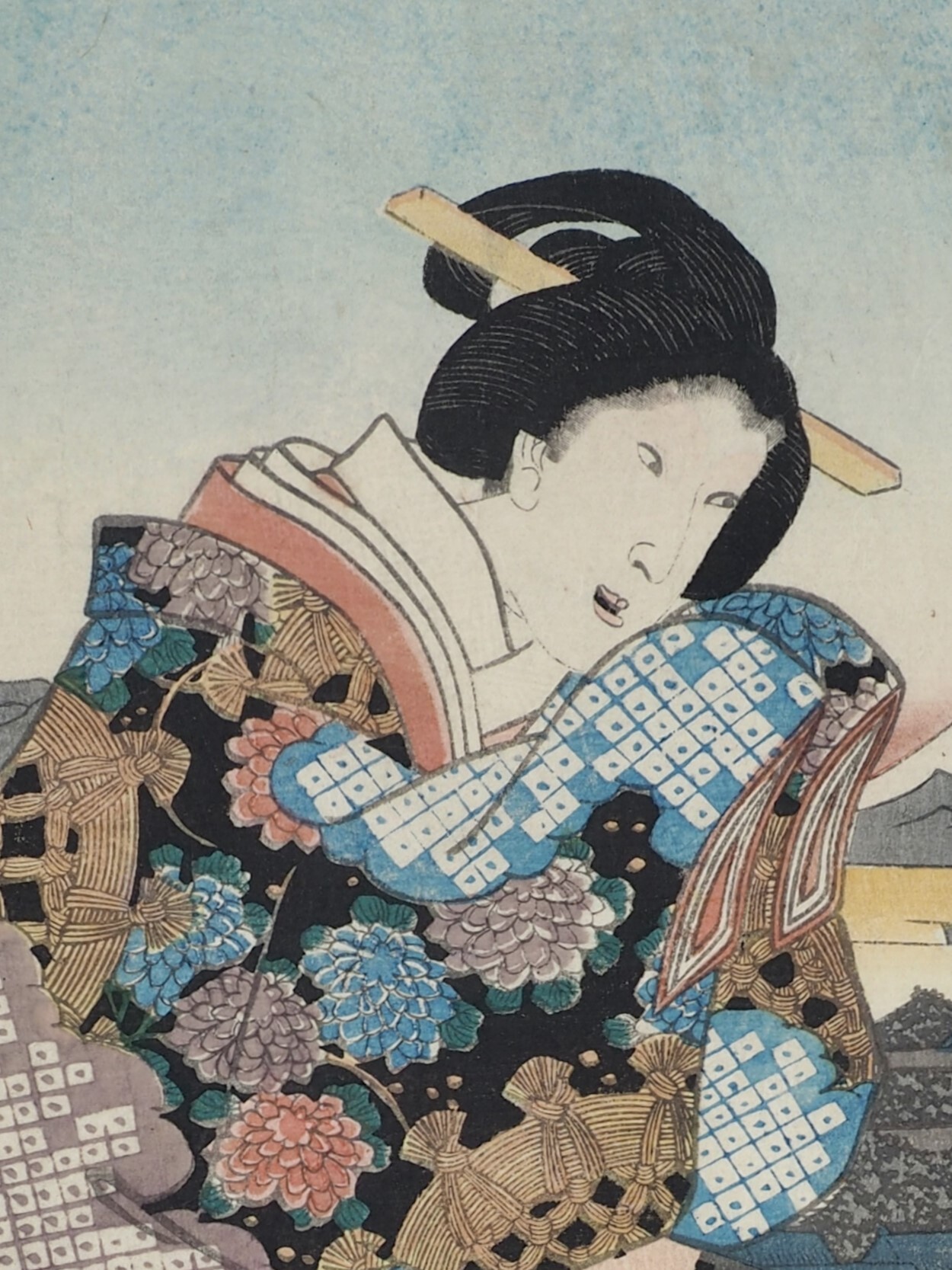Любительница баллад Гидаю (Gidayû kô). Из серии "24 наслаждения красотами современности" (Nijûshi kô tôji no hanamono).