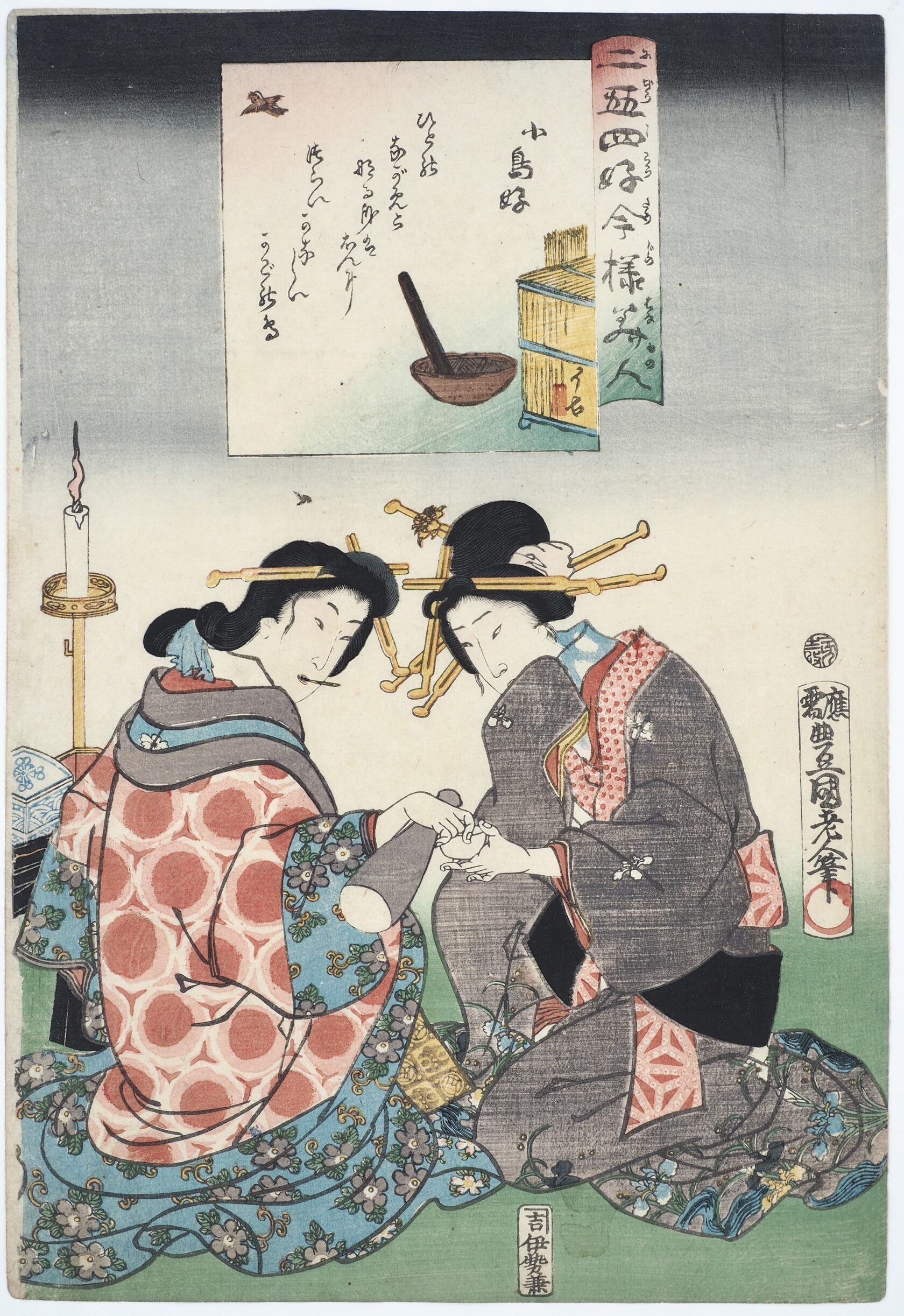 Любительницы маленьких птичек. Из серии "24 наслаждения красотами современности" (Nijûshi kô tôji no hanamono).