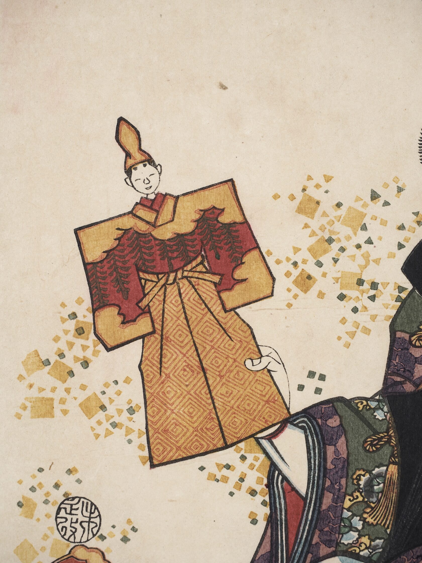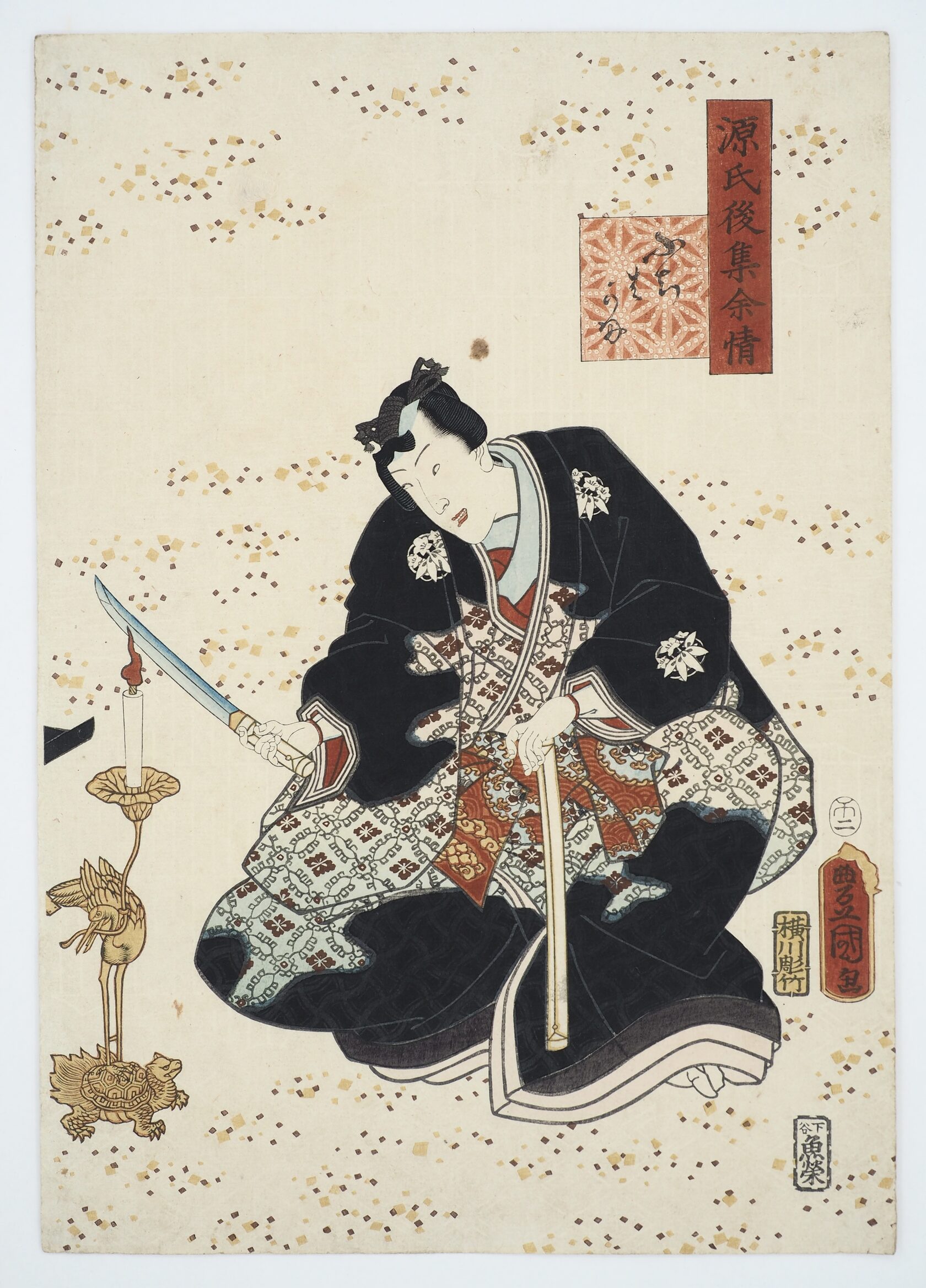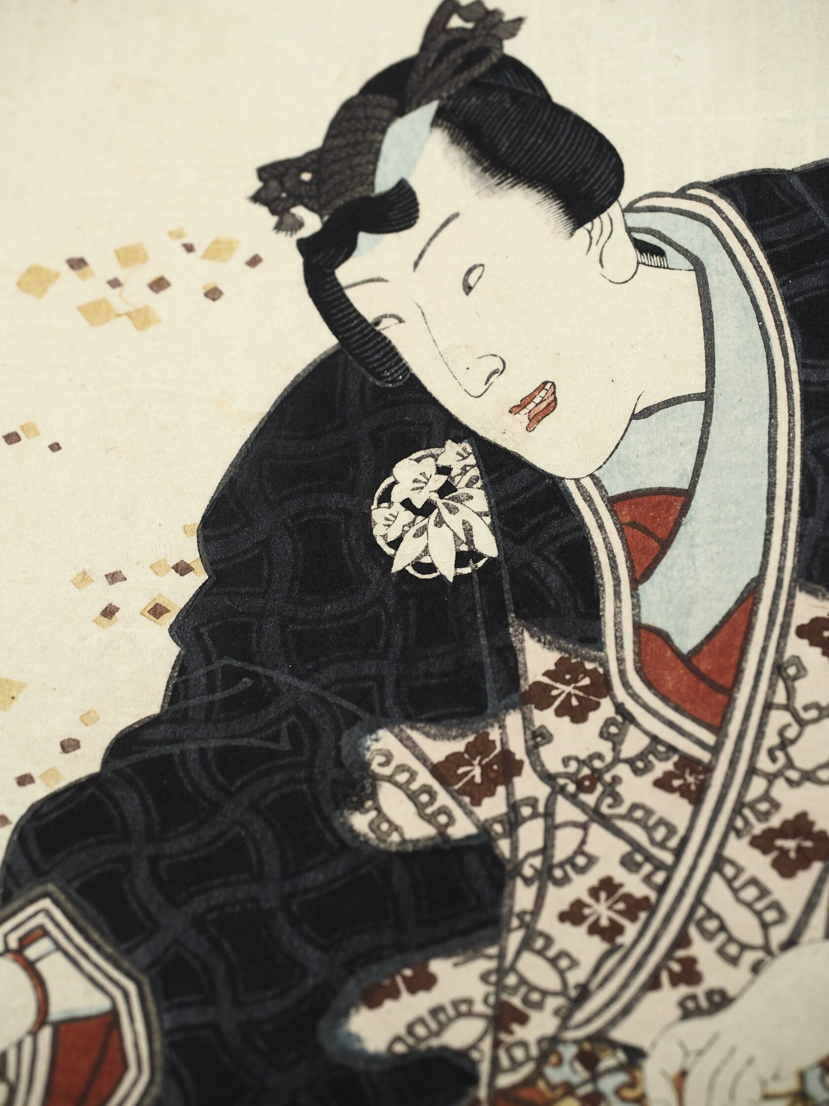 歌川 国貞 / 豊国 Крупнейший японский художник и мастер цветной ксилографии (гравюры)периода Эдо. В начале пути Кунисада обратился к жанру театральной гравюры якуся-э, который стал основным видом его творческой деятельности и принес художнику заслуженную славу ведущего мастера школы Утагава. В 1844 году после смерти своего учителя Тоёкуни, Утагава Кунисада стал официальным главой школы Утагава и сменил имя на Тоёкуни III.