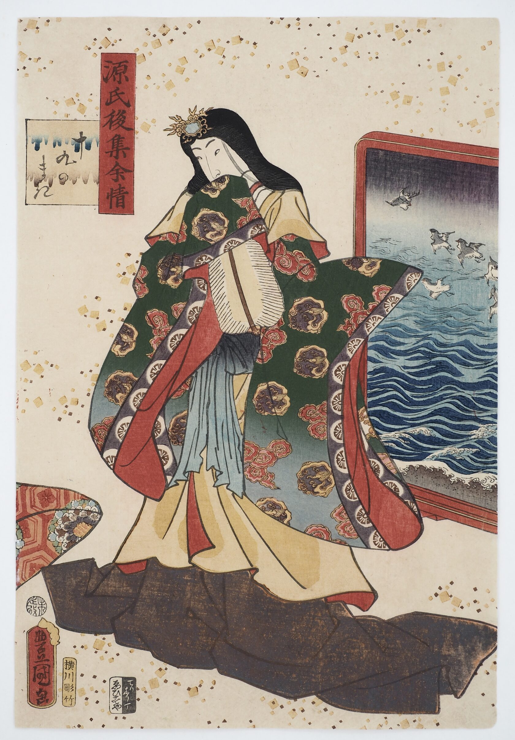Глава 30, из серии «Нескончаемые чувства собрания сочинений о Гэндзи» (Genji goshû yojô) [игра слов с «Пятьдесят четыре главы повести о Гэндзи» (Genji gojûyojô)]. Диптих.