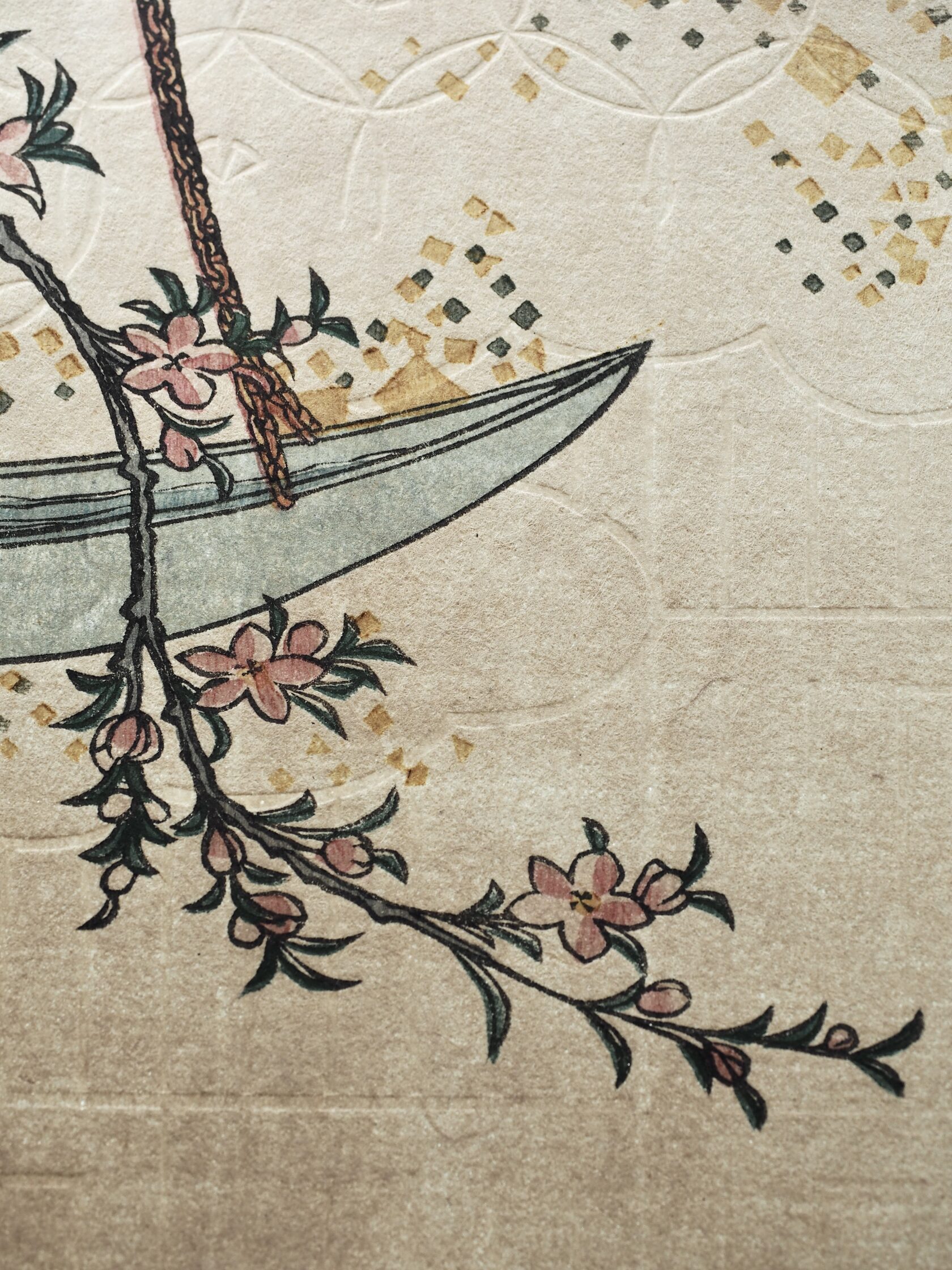 Пьеса: Sakura Soshi Gonichi Bundan Прекрасная сцена из пьесы кабуки «Сакура соси гоничи бундан». В ролях: Итикава Кодандзи IV в роли Асакуры Того, Бандо Хикосабуро IV в роли перевозчика Дзмпея.