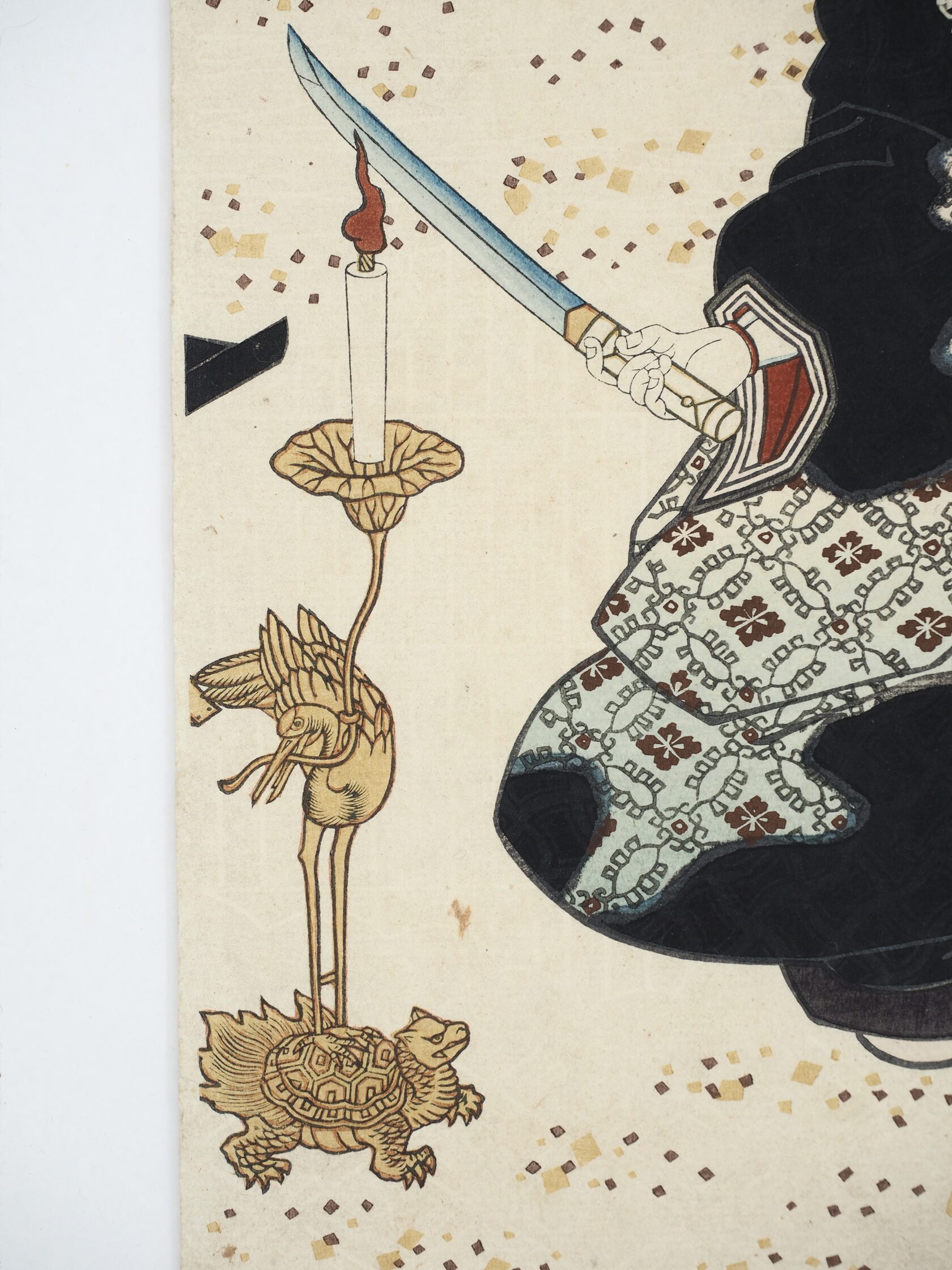 1 лист: Ивай Хансиро VII в образе самурая с портретом в руке. Ивай Хансиро VII (Iwai Hanshirô VII) - брат Хансиро VI (изображен на 2 листе).